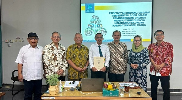 Dalam disertasinya ia menyampaikan soal UU Pemerintah Aceh yang dinilai belum efektif menjadi pedoman kebijakan pembangunan daerah, terutama dalam memperkuat ketahanan ekonomi Aceh Utara. Hal ini disebabkan oleh rendahnya peran dan karakter elite politik baru dalam menjalankan UU Pemerintah Aceh melalui kebijakan yang tepat, ketidakpastian hukum dari isi UU Pemerintah Aceh terhadap regulasi nasional lainnya, dan minimnya peran masyarakat dalam memberikan feedback positif pada kebijakan pemerintah daerah. Kondisi tersebut berimplikasi negatif terhadap ketahanan ekonomi Aceh Utara yang membuat Aceh Utara rentan dari ancaman kemiskinan, dan kemandirian daerah.