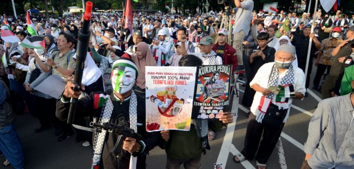 Dalam Aksi Bela Palestina tersebut mengecam keras kejahatan Israel melakukan serangan yang dimana melanggar perjanjian gencatan senjata di Gaza.
