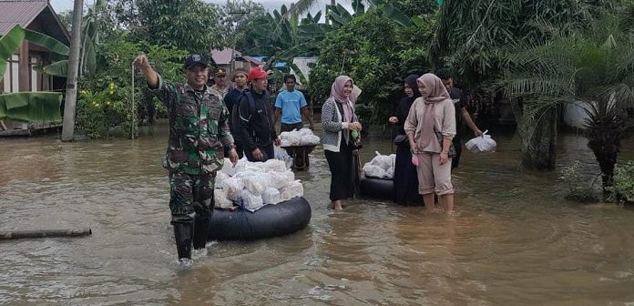 Menurut Kapuspen TNI banjir yang melanda daerah itu sejak seminggu yang lalu tak kunjung surut debit air terpantau tidak berkurang dan bahkan cenderung meningkat. Aktivitas warga pun terganggu, karena jalan desa dan rumah terendam air dengan ketinggian bervariasi.