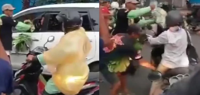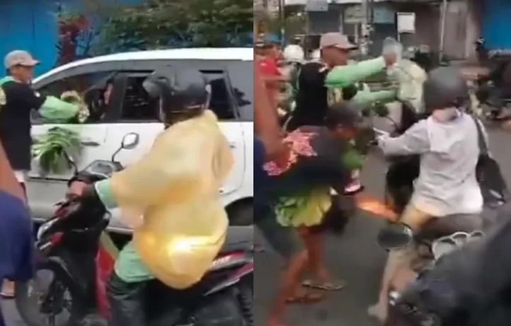 Tampak dalam video beberapa pria menghentikan pengendara yang melintas di depan Plaza Muntilan, di jalan utama Magelang – Semarang.