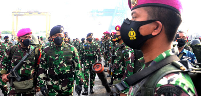 JAKARTA, Teritorial.com – Wakil Kepala Staf Angkatan Laut (Wakasal) Laksamana Madya TNI Ahmadi Heri Purwono (kedua kiri) didampingi Danpasmar 1 Brigjen TNI (Mar) Hermanto (kiri) mengecek kendaraan tempur (ranpur) amfibi saat Apel Gelar Kesiapan Latihan Puncak TNI AL Armada Jaya XXXIX TA 2021 di JICT II, Tanjung Priok, Jakarta, Senin (28/6/2021). Prajurit TNI AL dikerahkan untuk membantu penanganan serta mempercepat program vaksinasi dikarenakan tingginya tingkat penularan kasus COVID-19 di Indonesia, maka pelaksanaan Latihan Armada Jaya XXXIX TA.2021 yang semula akan berlangsung pada 28 Juni hingga 7 Juli 2021 di Dabo Singkep, Kepulauan Riau ditunda.