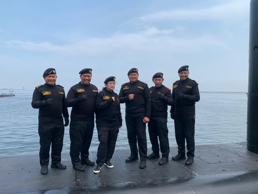JAKARTA, Teritorial.com – Enam pejabat negara resmi menjadi warga kehormatan kapal selam setelah menerima penyematan brevet Hiu Kencana oleh Kepala Staf Angkatan Laut (KSAL) Laksamana Yudo Margono di KRI Alugoro-405, Tanjung Priok, Jakarta Utara, Senin, (28/11/2022). Enam pejabat negara yang disematkan brevet Hiu Kencana adalah Ketua DPR RI Puan Maharani, Anggota 1 BPK RI N Adhi Suryadyana, Kapolri Jenderal Listyo Sigit Prabowo. Kemudian KSAD Jenderal Dudung Abdurachman, KSAU Marsekal Fadjar Prasetyo, dan Wakasal Laksamana Madya Ahmadi Heri Purwono.