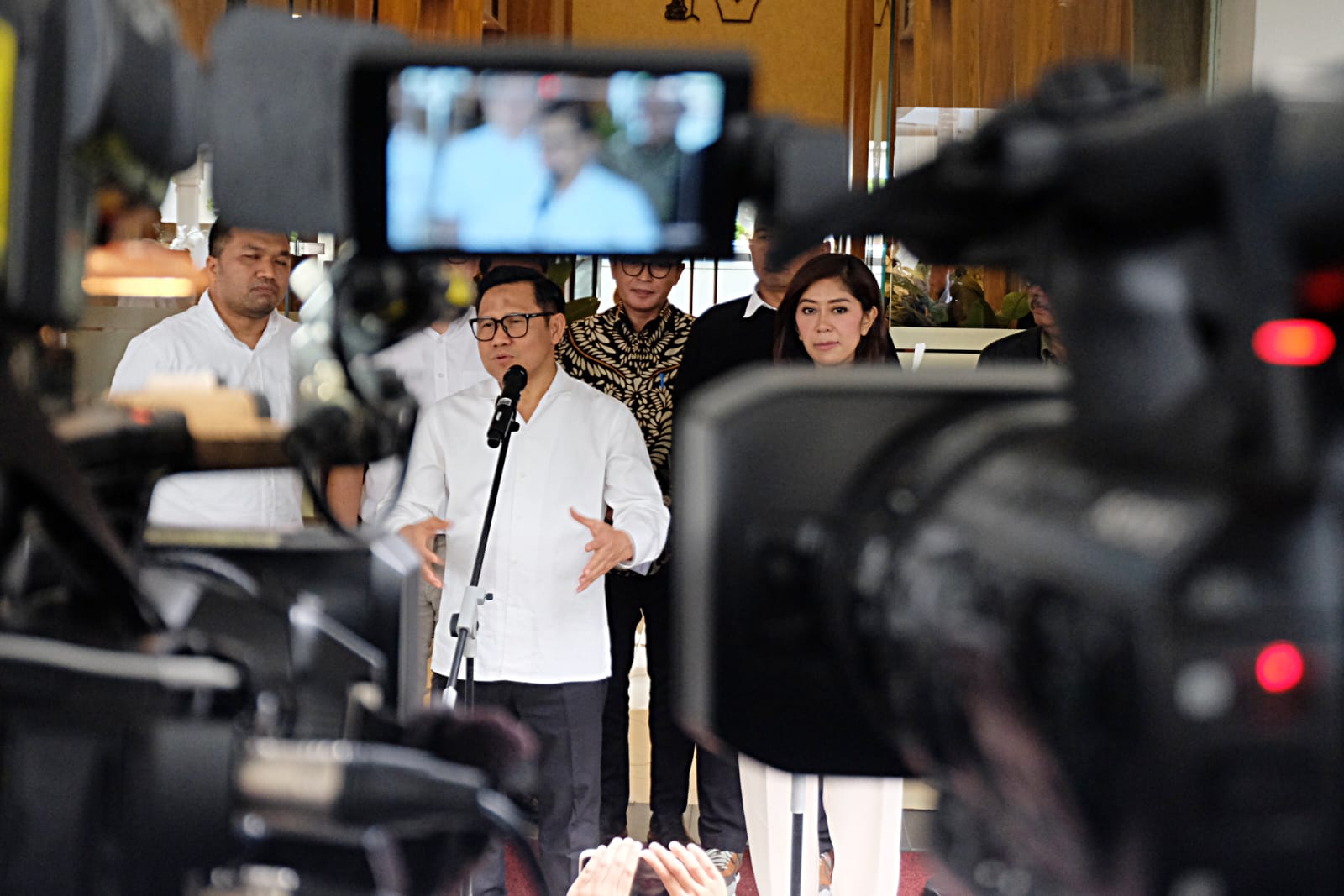 Menteri Koordinator Pembangunan Masyarakat (Menko PM) Muhaimin Iskandar bersama Menteri Komunikasi dan Digital (Menkomdigi) Meutya Hafid menyatakan bahwa judi online adalah ancaman serius bagi masyarakat saat konferensi pers penanganan judi online yang berlangsung di kantor Kemenko PMK, Jakarta, Kamis (28/11/2024).