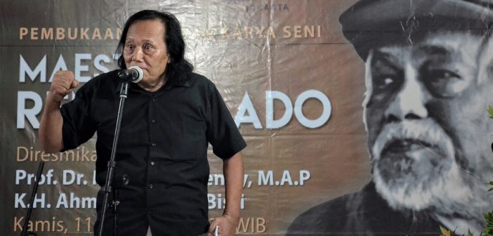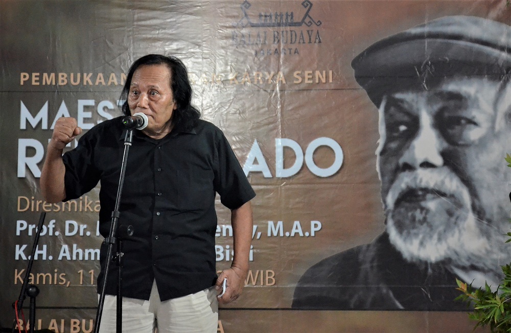 Maestro Remy Sylado memberikan sambutan saat Pameran Karya Seni “Maestro Remy Sylado” di Balai Budaya Jakarta, Menteng, Jakarta Pusat, Kamis (11/7/2019). Pameran ini adalah sebuah penghargaan pada kesetiaan dan sikap Remy Sylado dalam membangun dunia kreativitas, dan sebagai pendobrak kotak-kotak dalam kesenian.