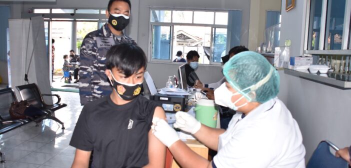 Pada hari Jumat atau hari enam belas serbuan vaksinasi COVID-19, masih banyak warga masyarakat, anggota TNI beserta keluarga dan karyawan sekitarnya yang antusias mengikuti kegiatan serbuan vaksin maritime TNI AL.