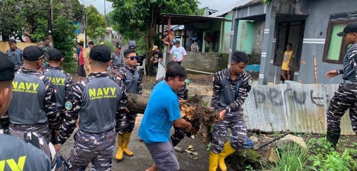 JAKARTA, Teritorial.com – Cuaca buruk dengan hujan intens dan angin kencang di Minahasa Utara menyebabkan pohon tumbang menimpa rumah warga di Perum Korpri Mapanget. Dalam respon cepat, prajurit Pangkalan Udara TNI AL (Lanudal) Manado dan Satgas Penanggulangan Bencana turun tangan membantu evakuasi dan membersihkan pohon tumbang pada Selasa (30/01).