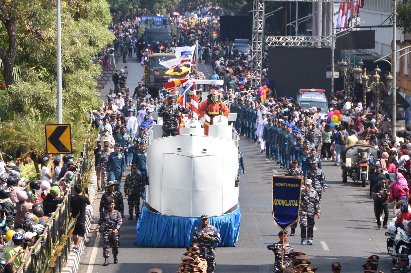 JAKARTA, Teritorial.com – Dalam rangka memperingati Hari Ulang Tahun (HUT) ke-78, TNI Angkatan Laut menggelar acara Kirab Kota, Minggu (17/09), di Surabaya. Event akbar yang digelar tersebut merupakan momentum bagi TNI AL untuk mengenalkan lebih dekat eksistensi TNI AL kepada masyarakat luas, khususnya Surabaya sebagai home of the Navy dikarenakan banyak Komando Utama (Kotama) yang menjadi kekuatan TNI AL berada di Kota Pahlawan tersebut.