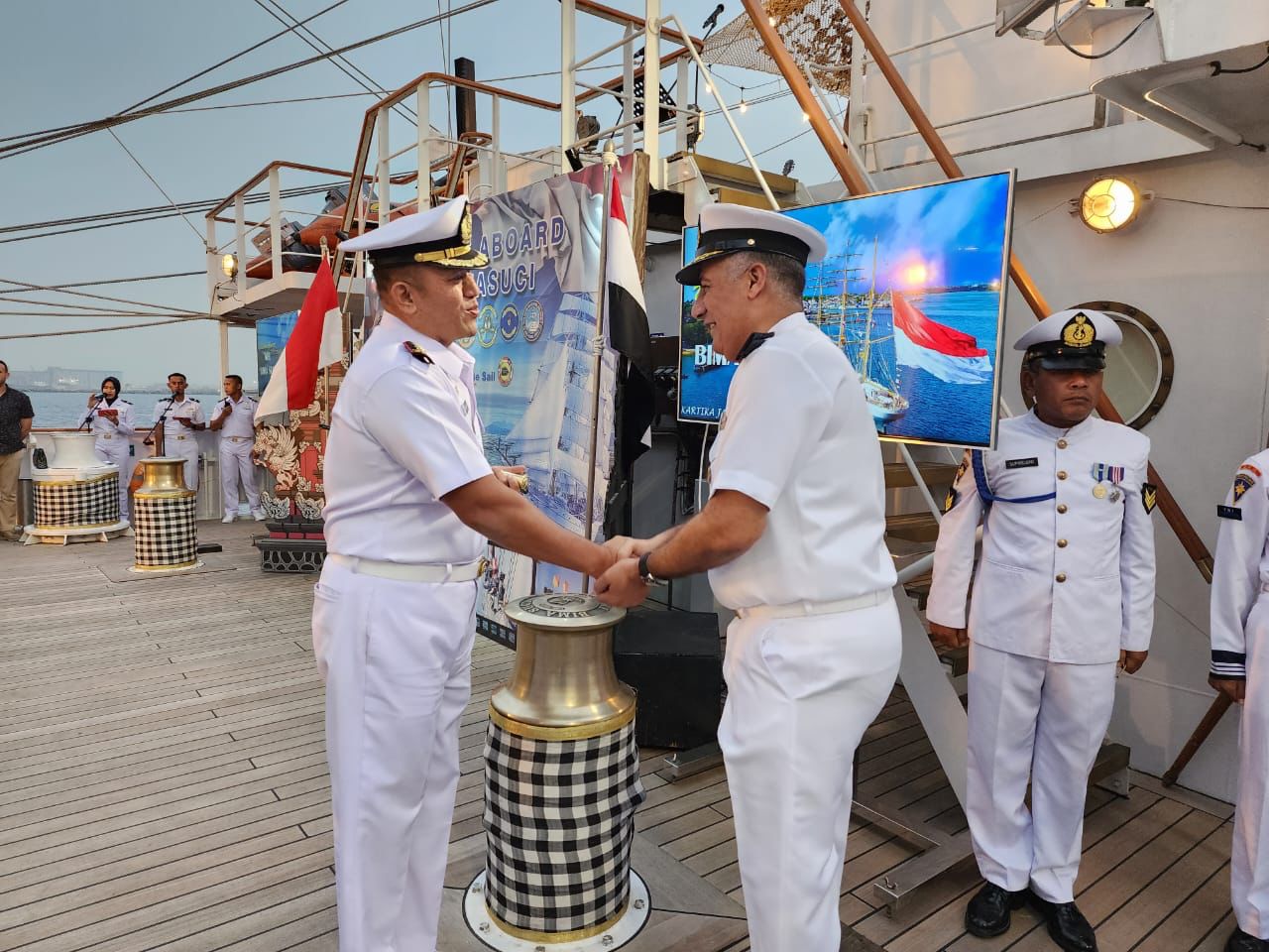 Sebelumnya, KRI Bima Suci di Alexandria Naval Base pada Sabtu (20/05) disambut oleh Atase Pertahanan RI Mesir Kolonel Kav Aria Sanggita Saleh beserta staf Athan, dilanjutkan dengan Courtesy Call Komandan KRI Bima Suci Letkol Laut (P) M. Sati Lubis beserta 2 perwira staff kepada Commander of Alexandria Naval Base Rear Admiral Walid Ali Mahmoud Atiyah.