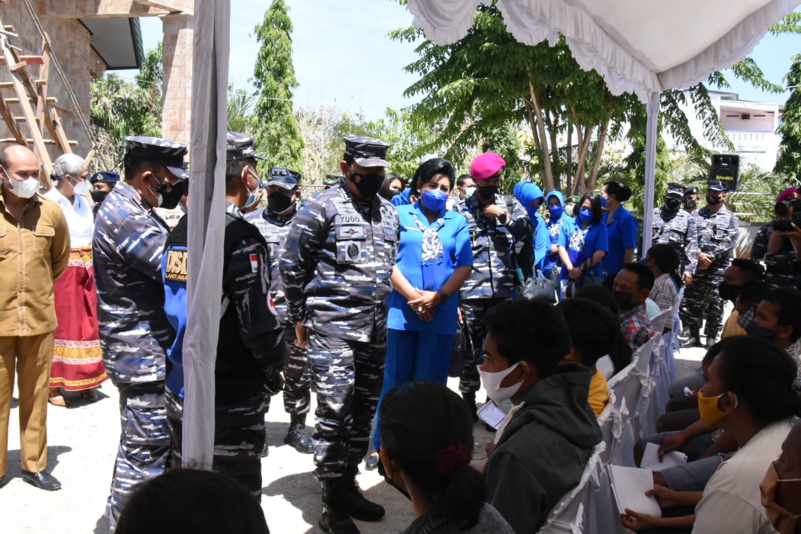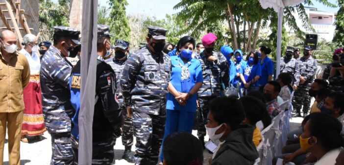 KUPANG, Teritorial com – Kepala Staf Angkatan Laut (KSAL) Laksamana TNI Yudo Margono, S.E., M.M., didampingi Ketua Umum Jalasenastri Ny. Vero Yudo Margono meninjau pelaksanaan serbuan vaksinasi Covid-19 yang diinisiasi Pangkalan Utama TNI Angkatan Laut (Lantamal) VII Kupang bagi masyarakat yang digelar di tiga Gereja di Wilayah Kupang, Nusa Tenggara Timur (NTT), Senin, (13/9).