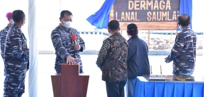 JAKARTA, Teritorial.com – Kepala Staf Angkatan Laut (KSAL) Laksamana TNI Yudo Margono, S.E., M.M., meresmikan Dermaga Pangkalan Angkatan Laut (Lanal) Saumlaki dalam rangka mendukung pengamanan laut di Alur Laut Kepulauan Indonesia (ALKI) III yang ditandai dengan penekanan tombol sirine dan penandatanganan prasasti oleh Kasal bertempat di Saumlaki Kepulauan Tanimbar, Maluku, Kamis, (17/6)