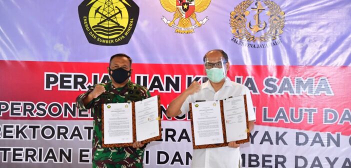 Penandatanganan Kerjasama antara TNI AL dan Dirjen Migas dan Kementerian ESDM dilakukan oleh Direktur Jendral Minyak dan Gas Bumi Prof. Ir. Tutuka Ariadji, M.Sc., Ph.D., IPU., dan Aspers Kasal Laksamana Muda TNI Irwan Achmadi, M.Tr (Han).