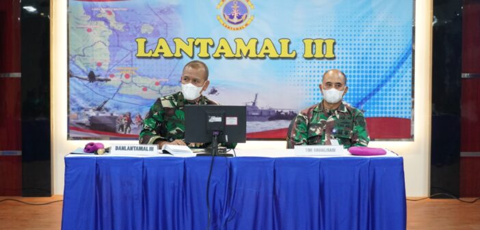 JAKARTA, Teritorial.com – Komandan Lantamal III Jakarta Brigjen TNI (Mar) Umar Farouq, S.A.P. membuka Sosialisasi dan Supervisi percepatan penyelenggaraan Kampung Bahari Nusantara (KBN) TNI Angkatan Laut yang dihadiri oleh Paban III Tahwilmar Spotmaral Kolonel Mar Soeharijadi, dimana sosialisasi ini diperuntukkan bagi KBN di wilayah kerja Lantamal III, bertempat di Ruang Serbaguna Mako Lantamal III, Jln. Gunung Sahari no 2 Ancol Jakarta Utara.(Senin, 3 Mei 2021)