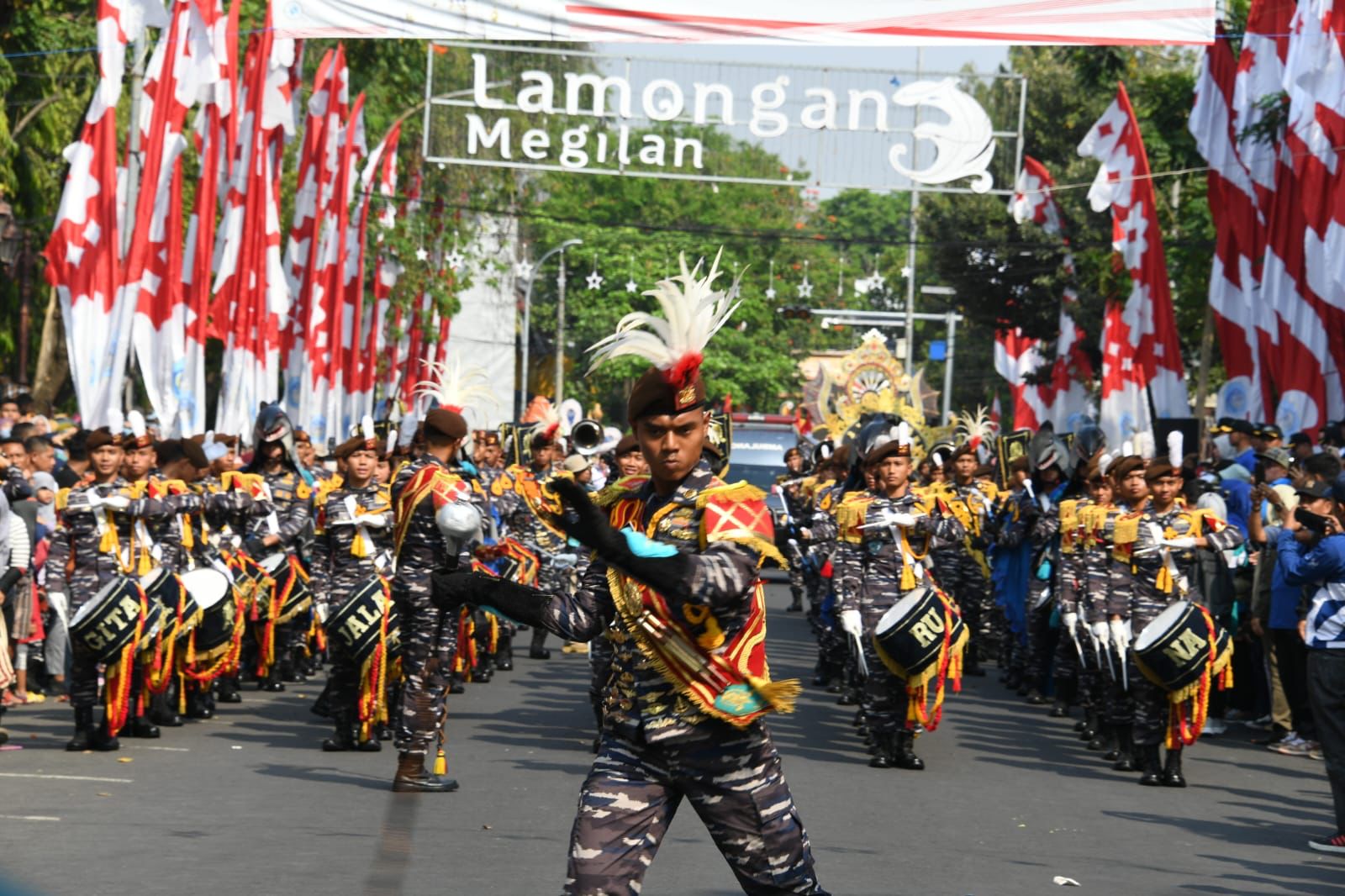Para pelajar dan masyarakat memadati jalan-jalan protokol hingga alun-alun Lamongan untuk menyaksikan Kirab Kota yang menampilkan Genderang Suling (GS) Gita Jala Taruna AAL, kemudian Kirab Bendera Paskibraka Kabupaten Lamongan, Carnival Perangkat Daerah, Bank Daerah Lamongan, PDAM, Permodalan Nasional Madani (PNM), Bank Jatim dan juga ditampilkan Kesenian Tradisional Khas Lamongan yakni Kesenian Tongklek.