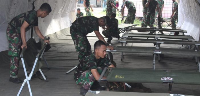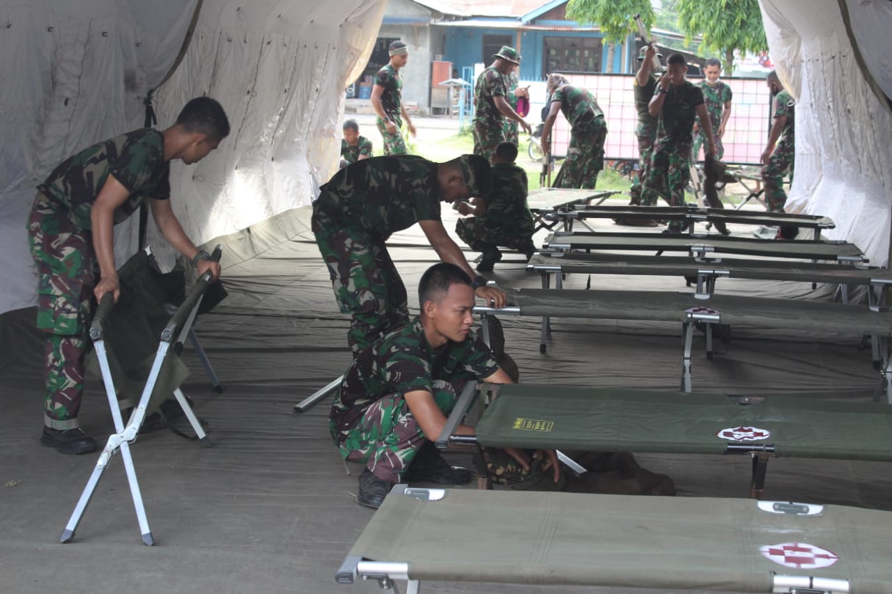 LEMBATA, Teritorial.com – Tim Medis dari Batalyon kesehatan korps Marinir TNI AL yang tergabung dalam Satuan Tugas (Satgas) Bencana Alam yang melanda Nusa Tenggara Timur, mulai mendirikan Posko Kesehatan untuk para pengungsi di Lewoleba, Lembata, NTT, Kamis, (08/04/21).