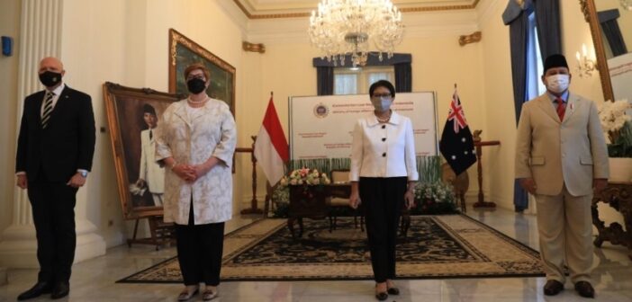 Menteri Pertahanan Prabowo Subianto mengikuti pertemuan Indonesia-Australia 2+2 Meeting di Kementerian Luar Negeri. Pertemuan ini melibatkan Menlu Marise Payne dan Menhan Peter Dutton dari Australia.
