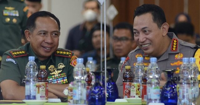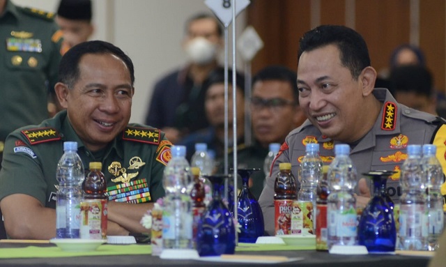 Kapolri Jenderal Pol Listyo Sigit Prabowo, Asintel Panglima TNI Mayjen TNI Djaka Budi Utama, Asrenum Panglima TNI Laksda Hery Puranto, Asops Panglima TNI Laksda TNI Rachmad Jayadi, Aster Panglima TNI Mayjen TNI Mochamad Syafei Kasno, Aslog Panglima TNI Laksda TNI Budi Sulistyo, Askomlek Panglima TNI Marsda TNI Kustono, Kapuspen TNI Mayjen TNI Dr. Nugraha Gumilar dan Kapusbintal TNI Laksma TNI Ian Heriyawan serta tamu undanganlainnya.