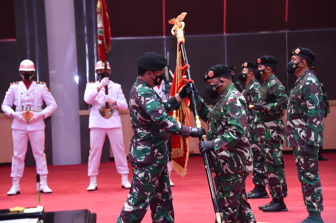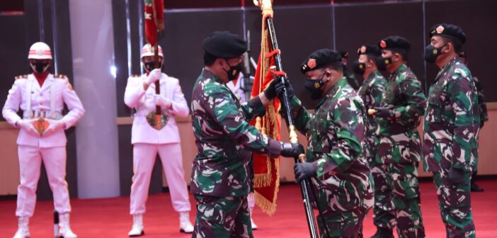 JAKARTA, Teritorial.com – Panglima TNI Marsekal TNI Hadi Tjahjanto, S.I.P. memimpin langsung upacara Serah Terima Jabatan (Sertijab) Panglima Komando Gabungan Wilayah Pertahanan I (Pangkogabwilhan I) dan Pangkogabwilhan III serta Komandan Pasukan Pengamanan Presiden (Danpaspampres), bertempat di Aula Gatot Soebroto Denma Mabes TNI, Cilangkap, Jakarta Timur, Selasa (10/8/2021).