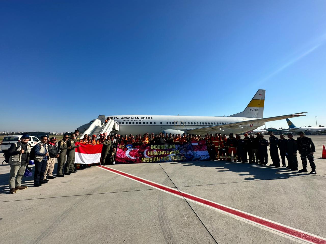 Dua pesawat tersebut masing-masing Boeing B-737-400 A-7308 dan C-130 Hercules A-1326, yang membawa bantuan logistik dan 55 personel Medium Utility Search And Rescue (Musar) serta Emergency Medical Team (EMT).