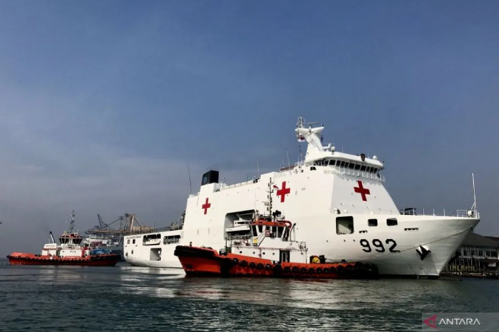 Jakarta, Teritorial.com – KRI dr. Radjiman Wedyodiningrat-992 sandar di dermaga Markas Komando Lintas Laut Militer (Kolinlamil) TNI Angkatan Laut, Jakarta, Kamis, dalam persiapan mengirim bantuan untuk rakyat Palestina di Gaza, sekaligus menyediakan layanan kesehatan.
