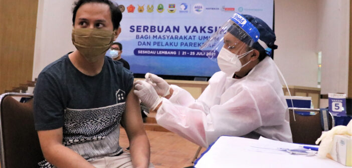 Dalam rangka mendukung percepatan program vaksinasi tersebut, Kemenkes RI, Kemenparekraf RI, Seskoau, Pemprov Jawa Barat, Pemkab Bandung Barat, Danone, dan Homecare24 bekerja sama menyelenggarakan Serbuan Vaksinasi di GOR Widya Dirgantara, Seskoau, Lembang, Bandung, Rabu (21/07/2021).