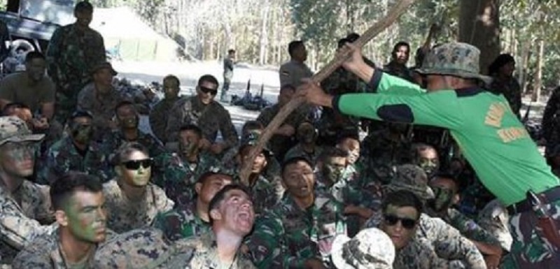 Teritorial.com – TNI Angkatan Laut (AL) melakukan kegiatan latihan bersama dengan Marinir Amerika Serikat (AS) di hutan Selogiri, Kalipuro, Banyuwangi, Jawa Timur. Dalam kegiatan latihan bersama tersebut TNI AL memberikan pelatihan kepada para Marinir AS untuk bertahan hidup di tengah hutan.