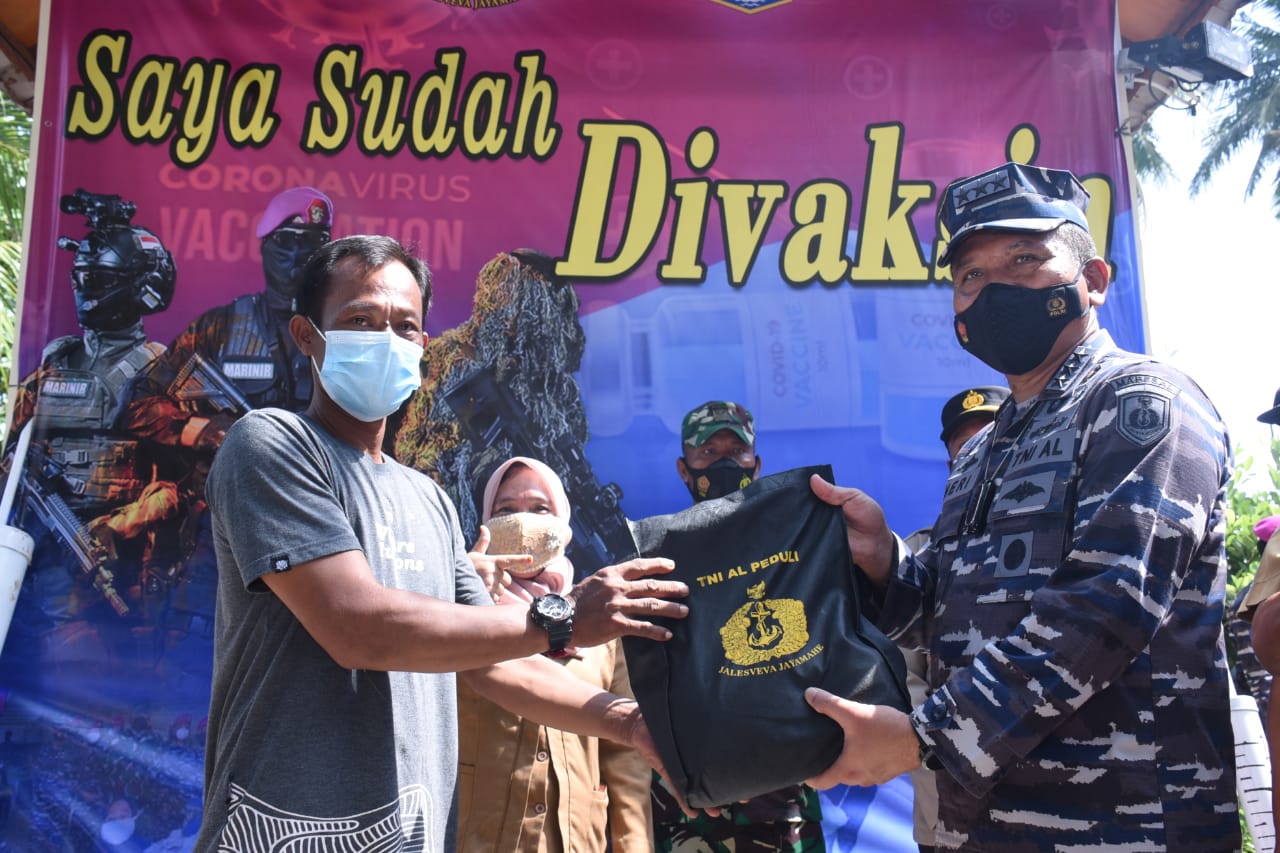 Selain kegiatan vaksinasi, TNI AL juga turut berperan untuk meringankan beban masyarakat dengan membagikan 1.000 paket sembako di wilayah Pulau Tidung dan sekitarnya.