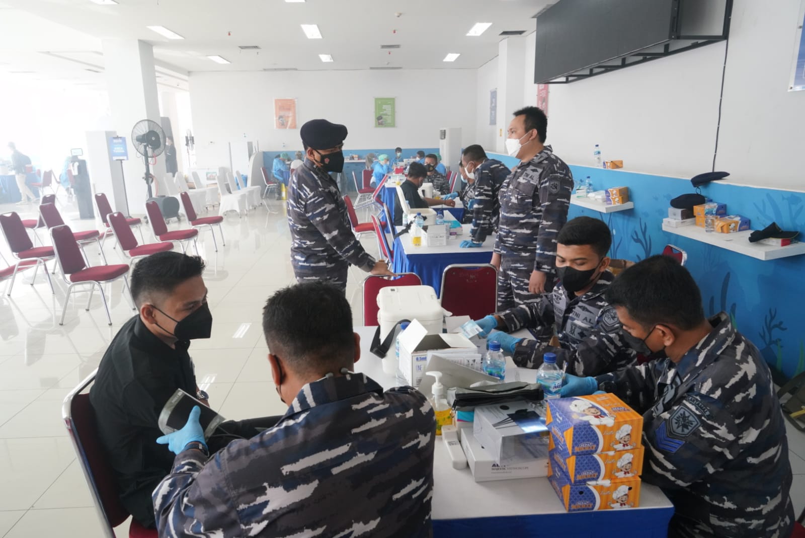 TNI AL dalam mencapai target serbuan vaksinasi di kawasan pesisir bekerjasama dengan Himpunan Pengusaha Muda Indonesia (HIPMI) guna untuk mempercepat vaksinasinasi nasional di kawasan pesisir Indonesia. Sesuai yang disampaikan Wakil Kepala Staf Angkatan Laut (Wakasal) Laksamana Madya TNI Ahmadi Heri Puwono saat meninjau serbuan vaksinasi pertama di TPI Modern Muara Baru mengucapkan terima kasih kepada HIPMI yang telah bekerja sama selama tiga hari dan membantu dalam serbuan vaksinasi yang menargetkan masyarakat maritim di kawasan pesisir.