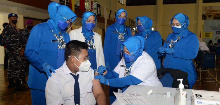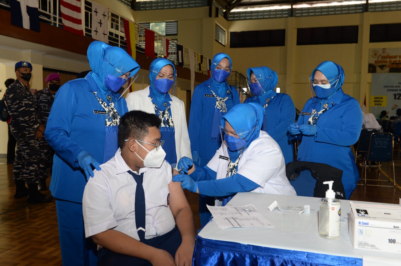 TNI Angkatan Laut Bersama CBS Jalasenastri Seskoal Kembali Melaksanakan Serbuan Vaksinasi Pelajar Usia 12-17 Tahun