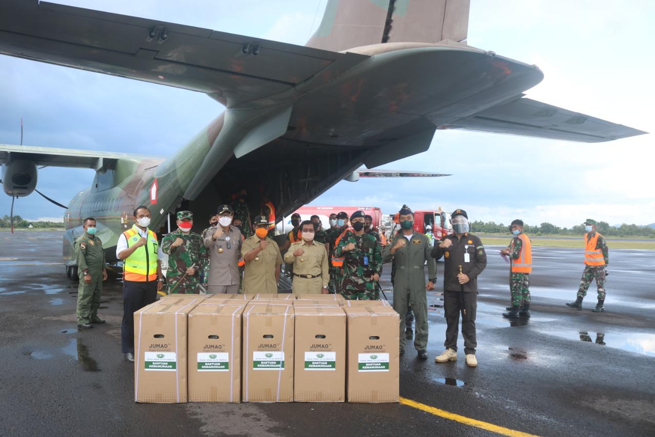 “Kami sangat bersyukur dan berterima kasih kepada semua pihak, khususnya bapak Panglima TNI, bapak Kepala Staf Angkatan Udara dan jajarannya , Bapak kepala Sekretariat Presiden RI, dan semua pihak yang terlibat dalam misi kemanusiaan dan telah secara nyata membantu masyarakat kami dalam penanganan Covid-19 saat ini,” ungkap Wagub saat menerima 50 konsentrator di Lanud H.AS Hanandjudin.