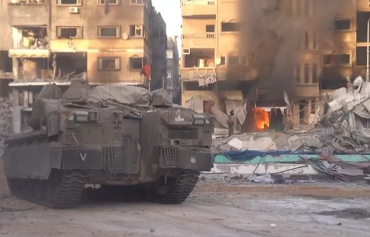 Tank Israel menuju Rumah Sakit Indonesia dari Beit Hanoun, sebuah kota di tepi timur laut Jalur Gaza. Tank-tank dan kendaraan Israel menarget rumah sakit Indonesia dengan peluru artileri dan menembak mati orang-orang yang berada di sekitar area tersebut.