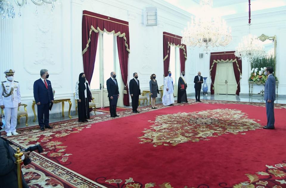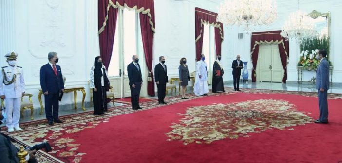 JAKARTA, Teritorial.com – Presiden Joko Widodo menerima surat kepercayaan dari 7 duta besar luar biasa dan berkuasa penuh (LBBP) dari negara sahabat pada Rabu, 10 Juni 2020. Penyerahan surat kepercayaan tersebut digelar di ruang kredensial, Istana Merdeka, Jakarta, dengan tetap menerapkan protokol kesehatan secara ketat.