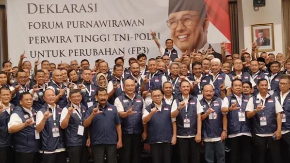 Jakarta, Teritorial.com – Purnawirawan TNI-Polri sebanyak 170 yang tergabung dalam Forum Purnawirawan Perwira Tinggi TNI-Polri untuk Perubahan (FP3) mendeklarasikan dukungannya untuk calon presiden Anies Baswedan dari Koalisi Perubahan dan Persatuan (KPP).