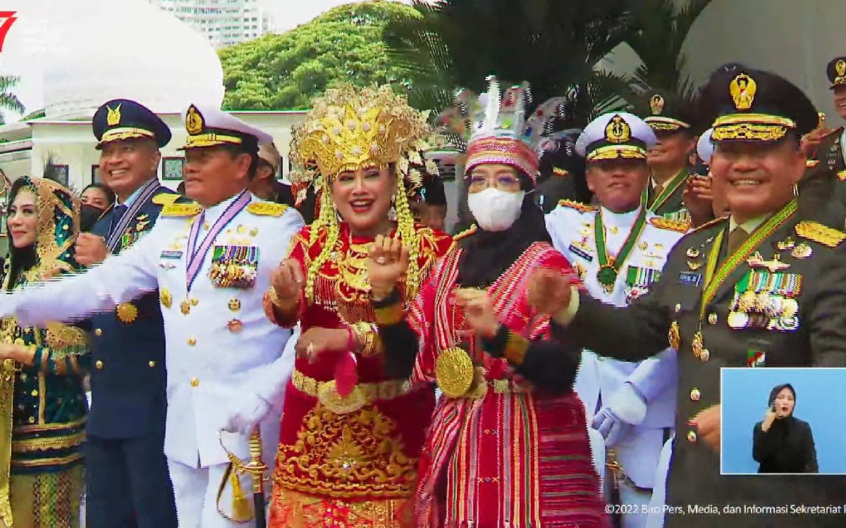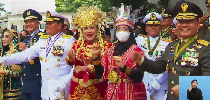 Selain Dudung, Kepala Staf Angkatan Laut (KSAL) Laksamana Yudo Margono bersama istri dan Kepala Staf Angkatan Udara (KSAU) Marsekal Fadjar Prasetyo bersama pasangan turut berjoget.