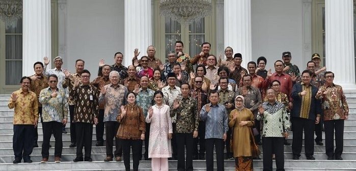 Jakarta, Teritorial.Com – Presiden Joko Widodo menggelar silaturahmi dengan Wakil Presiden Jusuf Kalla bersama dengan jajaran Kabinet Kerja. Acara yang digelar menjelang berakhirnya masa jabatan periode pertama Presiden Joko Widodo tersebut diselenggarakan di Istana Negara, Jakarta, pada Jumat, 18 Oktober 2019.